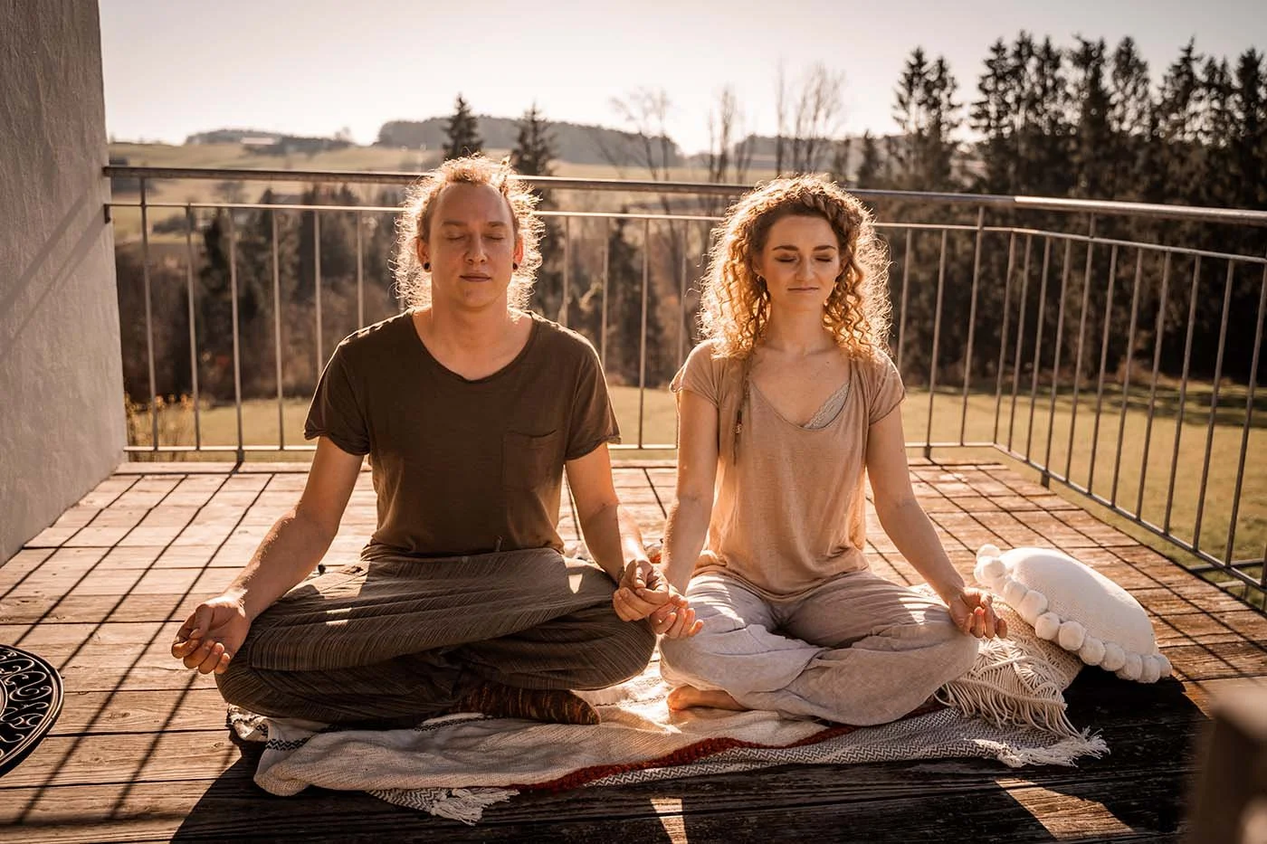 Rund um den Hof sind große Kristalle aufgestellt, die den Ort ganz viel Ruhe & Energie ausstrahlen lassen. Melanie & Alex machten sich in der Hochzeitssuite -entgegen der Tradition – zusammen fertig. Der dazugehörige Balkon eignete sich ideal für eine gemeinsame Yoga Session, die die beiden entspannt in den Tag starten ließ.